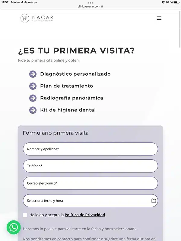 DISEÑO WEB CLÍNICA DENTAL NACAR.