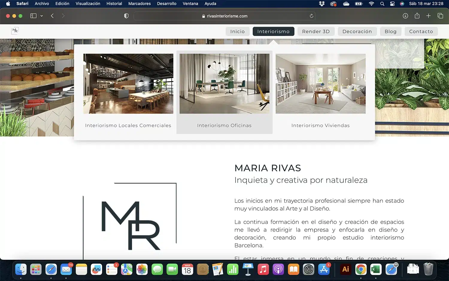 Rediseño web de María Rivas, una destacada diseñadora e interiorista de Barcelona. Este proyecto buscaba destacar su capacidad para transformar tanto espacios comerciales como residenciales, adaptando cada entorno para reflejar estilo y funcionalidad.